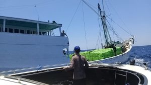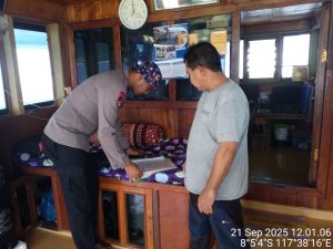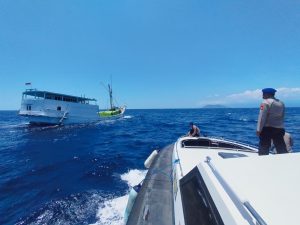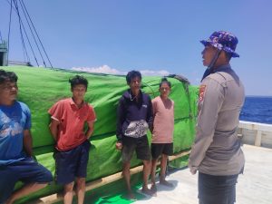 Personel Kapal Polisi XXI – 2014 Ditpolairud Polda NTB juga memberikan edukasi kepada nelayan dan pengguna kapal untuk berperan aktif dalam menjaga keamanan dan keselamatan di laut.