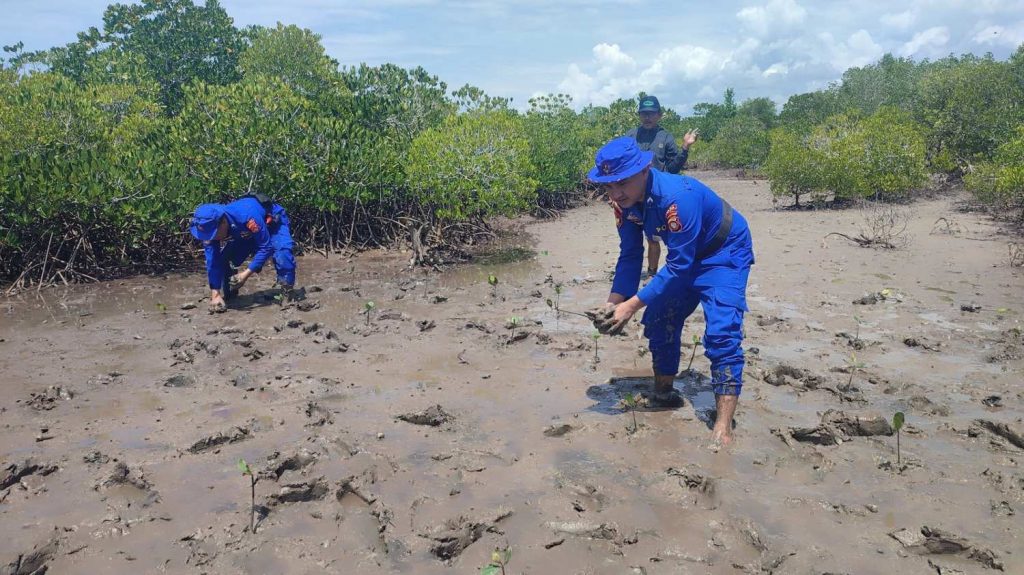 Aksi penanaman mangrove ini dilakukan secara gotong royong oleh personel Dit Polairud, perangkat desa, serta masyarakat nelayan yang tinggal di kawasan pesisir.