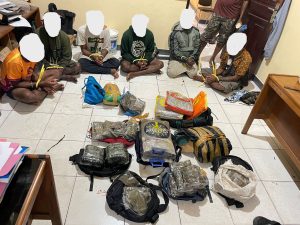 Dari pengungkapan ini aparat berhasil amankan enam (6) pelaku masing-masing berinisial EW, JM (35), TN (33), MR (26), PI (19), dan DM (25), empat di antaranya merupakan warga negara Papua New Guinea, sedangkan dua lainnya warga Kota Jayapura. Dari tangan mereka, petugas menemukan jumlah besar ganja kering yang dikemas dalam berbagai wadah seperti karung, plastik bening, tas ransel, dan kardus.