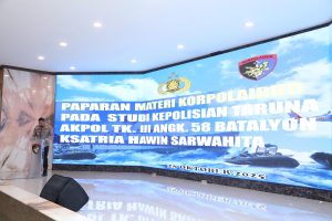 Sebagai bagian dari rangkaian kegiatan, para Taruna Akpol juga menerima pemberian materi pengenalan tentang tugas, fungsi, dan peran Korpolairud yang disampaikan oleh Kombes Pol Dr. Dedy Tabrani, S.I.K., M.Si., selaku Kabag Keselamatan Penerbangan dan Pelayaran Korpolairud Baharkam Polri.