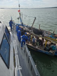 Sekitar pukul 14.00 WIB, petugas mendapati kapal nelayan tersebut yang di Nahkodai seorang pria berinisial MF, sedang melakukan aktivitas penangkapan ikan di atas kapal. Setelah dilakukan pemeriksaan, petugas menemukan 1 buah jaring ALET yang dilengkapi dengan 2 buah Timah pemberat segitiga dan ikan dengan jumlah kurang lebih 100 Kg ikan campuran dari hasil mereka melaut.