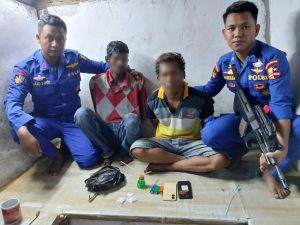 Dari hasil penyelidikan, petugas berhasil mengamankan dua orang terduga pelaku, masing-masing berinisial Muhammad Denny dan Asroy. Saat dilakukan penggeledahan di sebuah pondok di wilayah Jl. Gonyeh, Sungai Selat Morong, Kelurahan Pangkalan Pinang, Kecamatan Rupat, Kabupaten Bengkalis, ditemukan sejumlah barang bukti berupa: